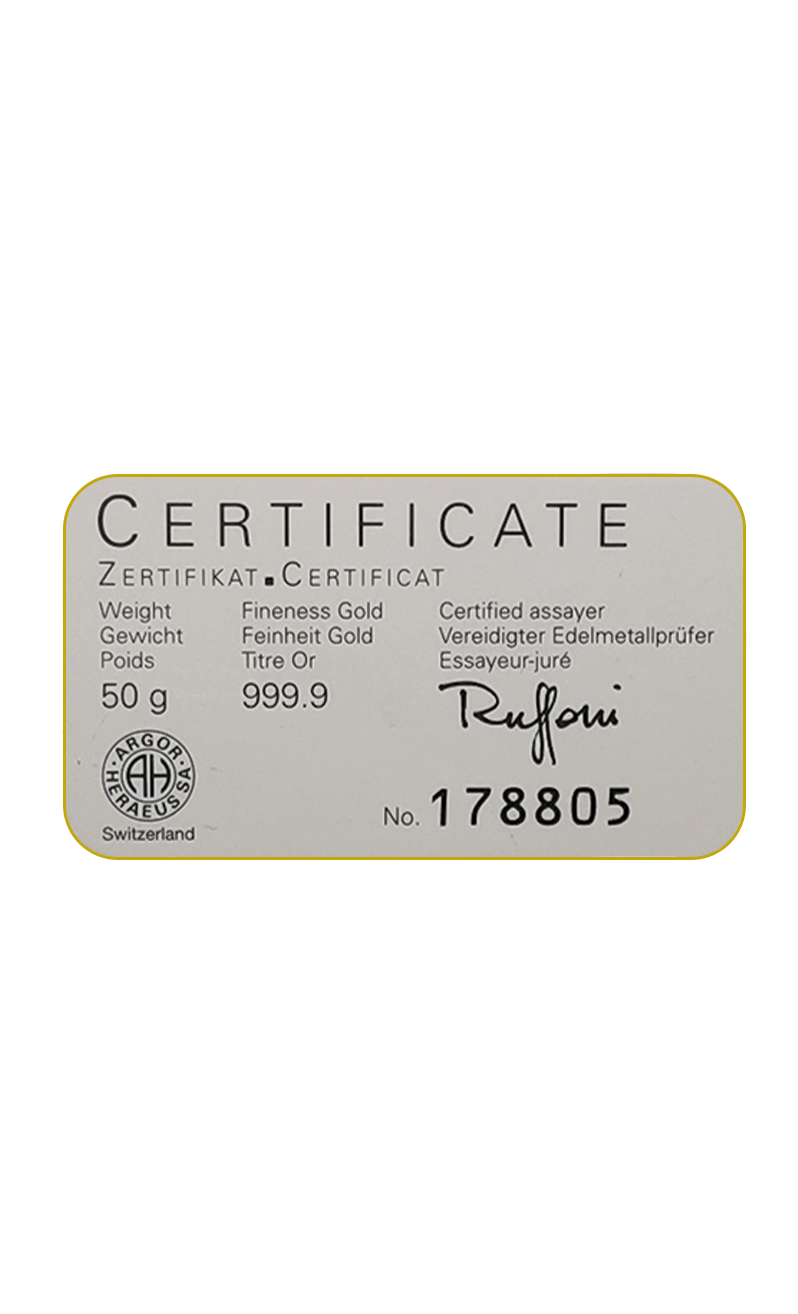 50g AU Investiční slitek Argor Heraeus 50G-C-AH